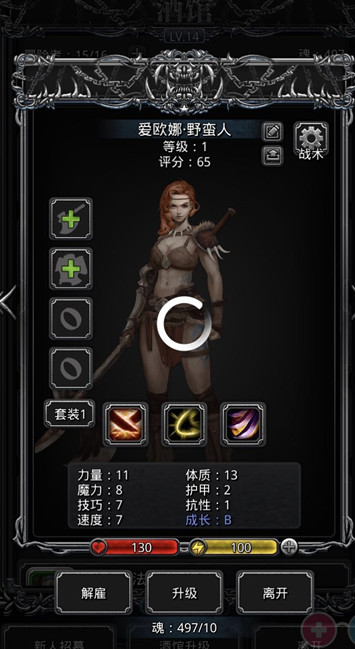 对于新手来说,前期可以重点培养系统赠送的B级战士过渡,酒馆每小时免费刷新时优先招募评分高的英雄。白脸法师虽然初期评分低但后期成长性强,独眼龙和老头圣职在速度和技巧上有先天优势。女战士比男战士更稀有但实际差异不大,不必刻意追求。记得蓝色和紫色品质英雄可以直接分解,集中资源培养高潜力角色。
