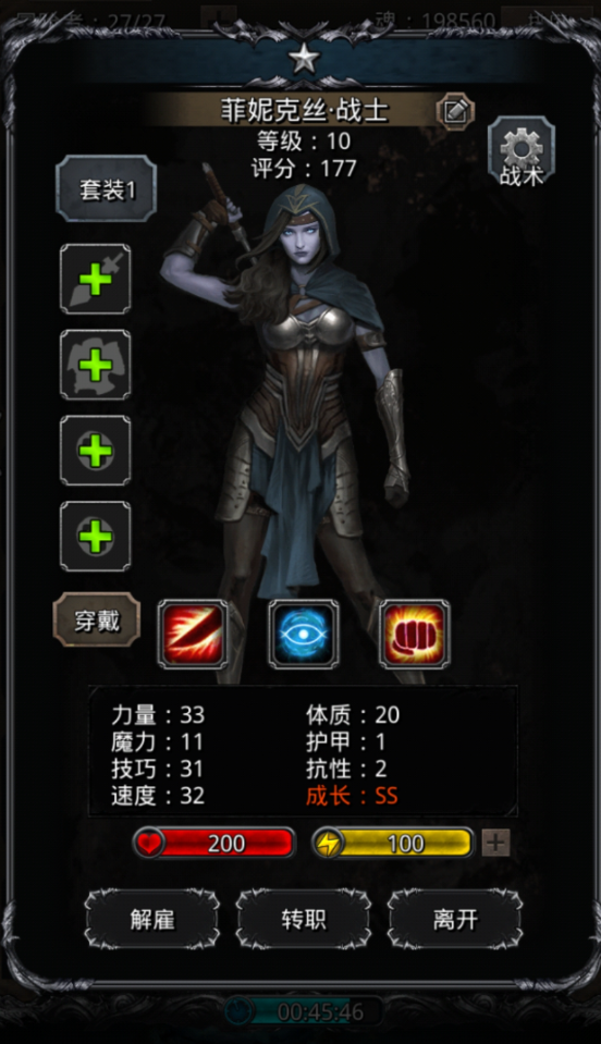 装备搭配方面,幽灵战士对技巧属性的需求非常高。无论是剑魔还是剑宗,优先选择加技巧的装备,比如草帽、高技巧武器等。如果走剑魔路线,可以适当补一些暴击和命中属性;剑宗则更注重生存,因为需要站场释放群体技能。战利品建议选增加技巧或速度的,这样能最大化她的功能性。