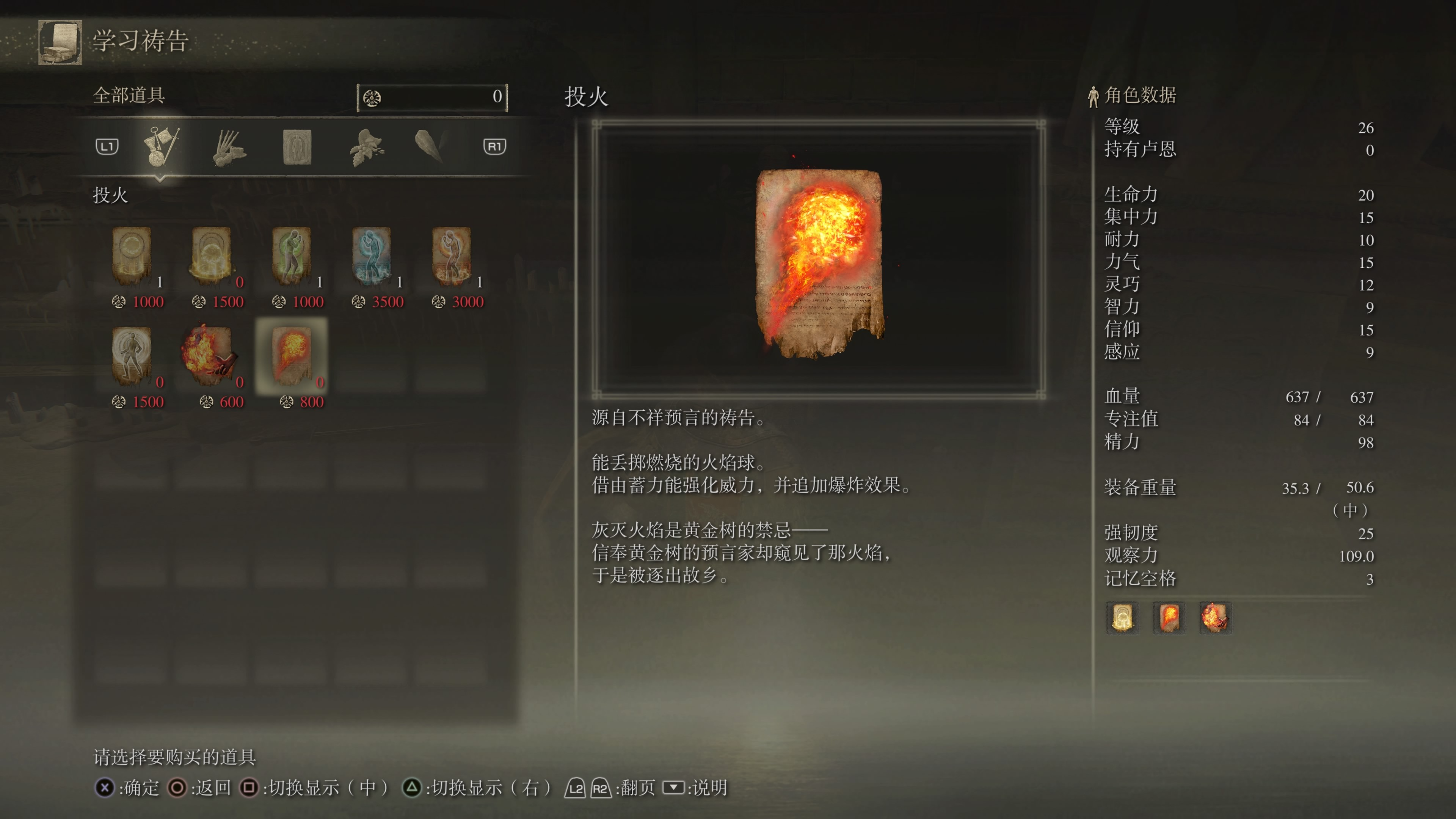 投火是一种基础的火焰系祷告技能,能够向敌人投掷火球造成远程伤害。该技能适合信仰流派玩家早期使用,获取方式较为直接,只需前往圆桌厅堂找到NPC圣职人员柯林,花费800卢恩即可购买。柯林的位置通常在大赐福区域的祷告学习点,若他不在原地,可能已移动至亚坛高原或黄金树大教堂附近,需推进主线剧情才能再次遇见。