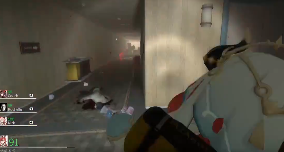 第一关起始于酒店高层,玩家需沿走廊向下移动,跟随疏散指示箭头前进。走廊两侧房间可能藏有补给或感染者,建议保持队形紧凑以减少被包围风险。途中会遭遇火焰阻挡区域,需从右侧房间破窗绕行。关键转折点是电梯触发点,进入电梯后按下开关会引发尸潮围攻,需在有限空间内防守直至电梯降落至底层。电梯下降过程中会因故障停驻,按E键强行开门后进入火场区域。