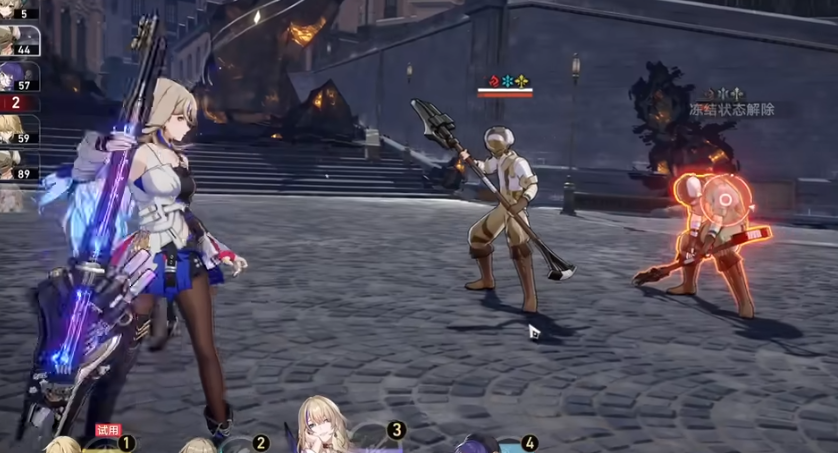 对于练度不高的朋友,建议手动操作,优先击破小机器人的弱点来充能大招。阿兰是这个关卡的好帮手,他的战技可以高效破盾,大招能快速清理两侧小怪。记得在进入boss战前存好大招,先对两侧小怪放两次大招,再对boss输出,留一个大招应对突发情况。