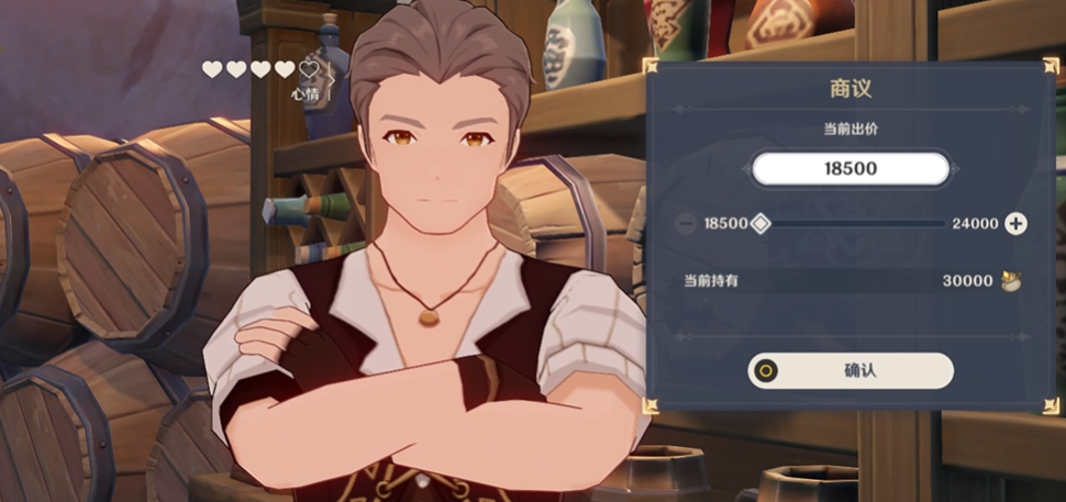 砍价策略上,建议将价格调整至区间75%左右,既能保证折扣又不至于过度降低好感度。酿酒师格奥尔格的订单金额较高,成交价约在21000-22073摩拉之间,需谨慎操作避免因压价过猛导致交易失败。完成资金筹备后进入店铺经营阶段,需分配可用资金至商品质量、营业效率和综合服务三个维度,确保进度条指标达到目标刻度。突发事件会随机出现,需及时调整经营方针以应对变化。