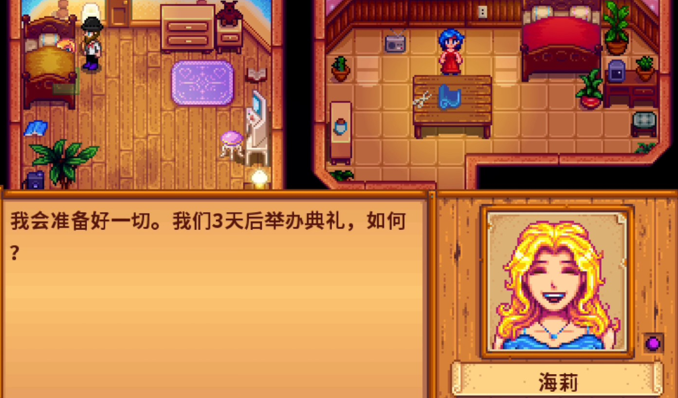 求婚阶段需要准备美人鱼吊坠作为定情信物。该物品需在春夏秋三季的雨天,前往海滩找到老水手花费5000金购买。冬季因不会自然降雨,需使用图腾求雨才能触发购买条件。求婚前还需确保农舍至少完成一次升级,并消耗300木材修复海滩断桥以开放潮汐池区域。将美人鱼吊坠赠予好感度满10心的角色后,系统会自动进入婚礼筹备阶段。