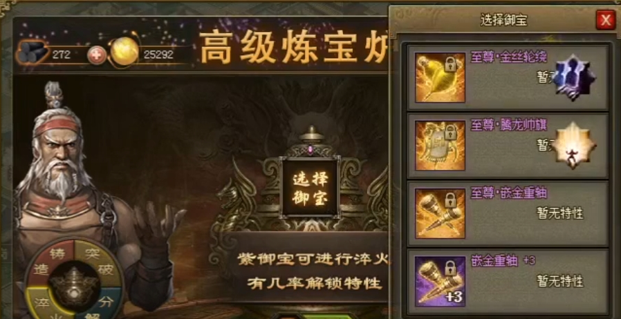 打造高级御宝是攻城掠地中提升战力的重要途径,但需要系统性的规划和资源管理。玩家需达到170级并完成两次171级副本任务才能开启御宝栏位,这是基础门槛。开启后需击败特定副本如典韦获取御宝图纸,初始可打造青铜剑等白色品质御宝。高级御宝的锻造需要收集对应材料,包括金属、宝石等,这些材料主要通过征战特定地形或参与活动获取。