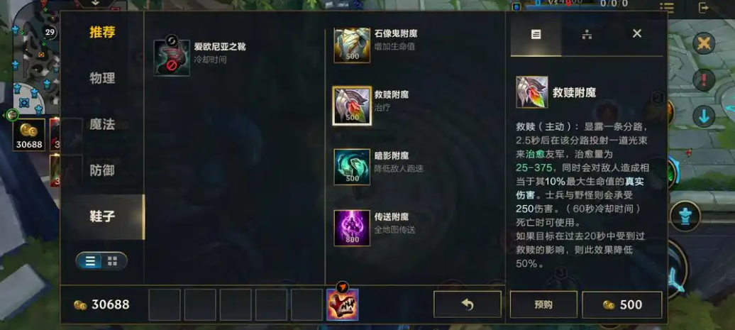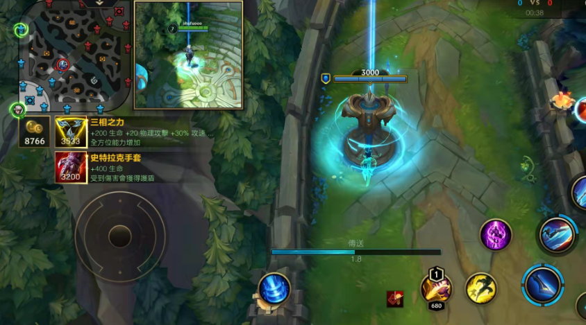 传送(TP)是一个非常重要的战术技能,但和端游不同,手游里没有直接作为召唤师技能的TP。传送被设计成了装备效果,需要通过购买特定的鞋子附魔来获得。想要使用传送,你得先回泉水合成鞋子,选择附魔Teleport Enchant,这样就能获得传送能力了。这种设计让传送变成了一种战术选择,而不是开局就能带的技能。