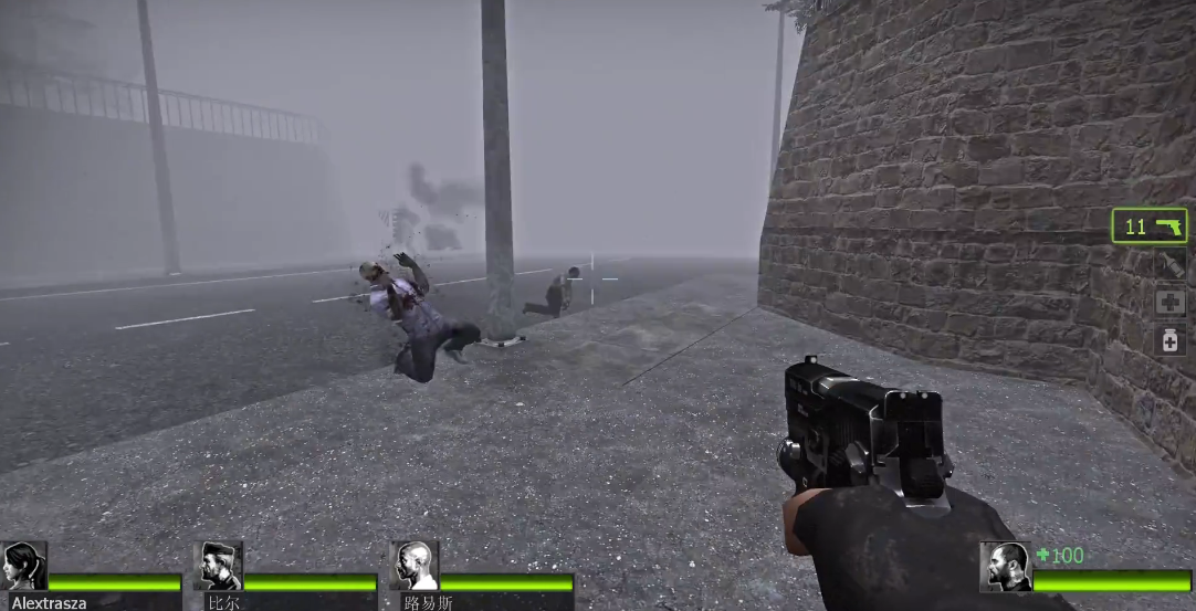 丧尸玩法是游戏的核心体验之一。玩家需要面对不同类型的丧尸,包括普通感染者、特殊感染者以及女巫等。普通感染者数量庞大但威胁较低,特殊感染者则具备独特攻击方式,如Hunter的飞扑、Boomer的胆汁喷射等。应对这些敌人需要团队协作和战术分配,前锋负责清理丧尸,辅助角色则需及时治疗队友并处理特殊感染者。合理利用近战武器和枪械是生存的关键,电锯等强力武器能快速清场但需注意耐久度。