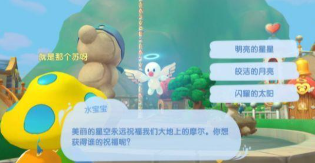 玩家靠近许愿池后,点击右侧的白色手套标志即可开始许愿。系统会提供三个不同的愿望选项,玩家需根据个人偏好选择其中之一。选择完成后,水宝宝会提示玩家次日早上返回许愿池领取礼物。需许愿和领取奖励需间隔24小时,且必须在次日主动返回许愿池交互才能完成奖励领取。