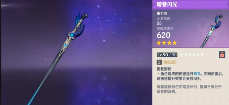 说到这把武器的特点,它的基础攻击力在四星武器里算是很高的,特别适合依赖攻击力加成的角色。比如班尼特这种靠大招奶人的角色,带上它就能大幅提升治疗量和攻击加成效果。另外像凯亚这样的输出型角色也能用,因为高白值能弥补他自身攻击力的不足。它的副属性是元素精通,对主打元素反应的角色提升有限,所以别硬塞给万叶这类需要堆精通的辅助哦。