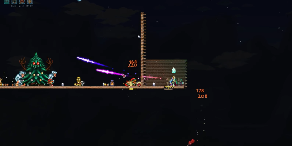 霜月作为圣诞节主题副本,其机制与南瓜月类似但难度更高。使用淘气礼物即可激活该事件,玩家需要应对雪人军团和冰雪女王等Boss的轮番攻击。副本后期会出现飞行单位与地面部队的混合攻势,对玩家的区域控制能力提出较高要求。成功通关后可获得强力的远程武器和翅膀类配饰。