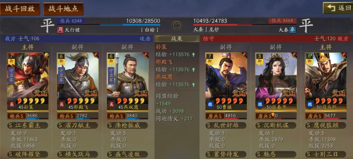 一个满体力120点的武将和一个只剩20点体力的武将,只要他们兵力、士气、等级和战法一样,在战场上的输出能力是相同的。体力影响的是出战资格而不是战斗数值。你在安排打架的时候,不用担心武将体力低会导致伤害变弱,真正要操心的是别让体力耗光,导致下一场战斗派不出人。这也意味着,你可以大胆地把体力不多的武将派出去打关键战役,不用担心他表现会打折。