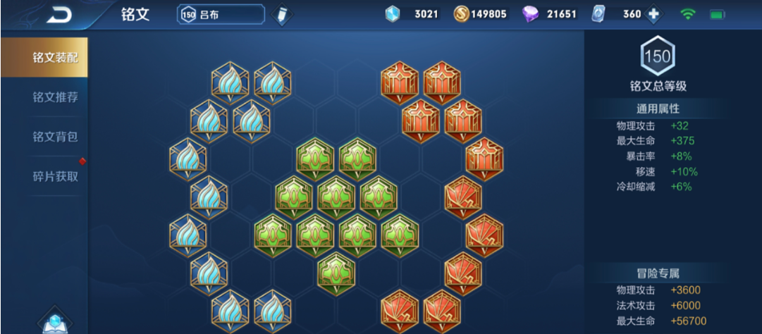 说完了出装顺序和核心装备,再来聊聊和这套出装配套的铭文以及一些实战中的小细节。铭文通常推荐带一些攻速,比如红月、狩猎,再搭配一些坦克铭文如虚空、宿命,这样前期对线既有一定的攻击手感,又有额外的生命值,对线换血不会太亏。在游戏里玩半肉吕布,前期一定要稳,不要老想着单杀对面,优先用一技能清兵的同时尽量刮到敌方英雄,保持武器附魔状态。二技能是你对线换血和续航的神技,尽量对着多个小兵或英雄使用,吸到的护盾越厚越好。大招不要轻易先手跳进去开团,除非能确定跳到敌方关键输出位或者能分割战场,更多时候可以等队友先手控制或者等敌方关键控制技能交掉后,再后手入场进行收割。记住你的核心任务是利用真实伤害持续输出,而不是打第一波爆发秒人。