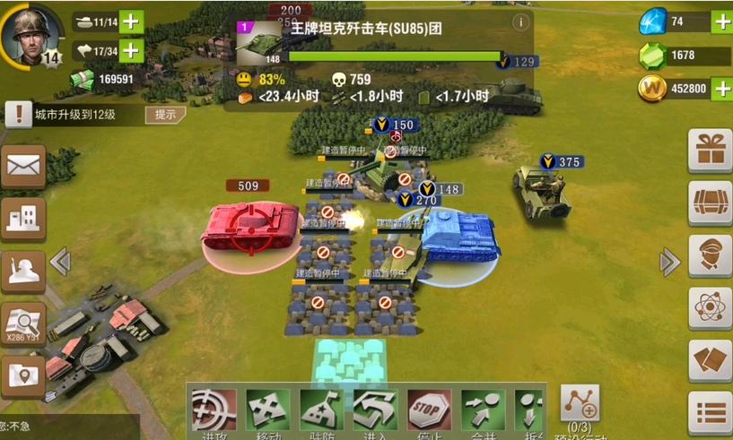 建议精打细算,优先保证基础建筑的升级,比如指挥部和兵工厂,这些建筑等级上去了,才能解锁更厉害的兵种和科技。修理和重建建筑也得预留一部分备用金,不然老家被人偷袭打烂了,连修墙的钱都没有可就尴尬了。中后期发展的时候,可以考量组建像榴弹炮这样的部队,它们能持续帮你获取军费和军备,形成良性循环。