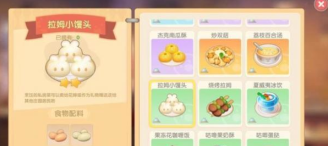 制作拉姆小馒头需要的原料非常简单,主要是鸡蛋和鸭蛋这两种基础食材。每次烹饪默认可以产出八份成品,每份小馒头的售价是七十一摩尔豆,保温时间大概在两分三十秒左右。如果选择在尼克的餐厅制作,还需要额外准备面粉哦,面粉可以通过在家园种植小麦然后加工获得。