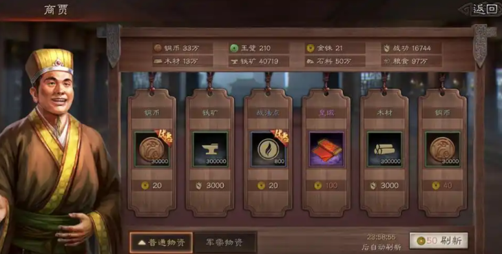 战功最常见的用途之一就是在商贾那里兑换各种资源,比如粮食、木材或者石料,这些东西在战争时期特别有用,能帮你及时补充消耗,避免因为资源短缺而拖慢进攻节奏。平时在发育阶段,你也可以用战功换取锻造材料,这些材料是制作和升级装备的基础,有了强力的装备,你的部队在战斗中就能发挥出更强的威力。
