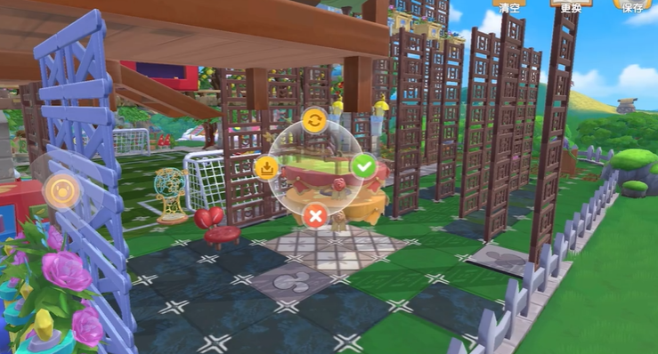 如果想玩点更高级的,比如做出悬浮或者空中楼阁的效果,那就需要借助其他家具来辅助了。像玫瑰桌子、木质平台这类家具就经常被大佬们用来当脚手架。具体操作时,可能需要斜着拖动平台,才能把你想隐藏的支撑家具给压住或者掩盖掉。贝壳和花门这类装饰物也经常和西瓜冰搭配在一起,比如用西瓜冰和贝壳组合先搭出一个抬高的地基,再用木质平台把花门的一部分压到地下去,创造出可以交互的奇妙空间。这些创意搭建很考验耐心和想象力,一点点调整位置是常事。