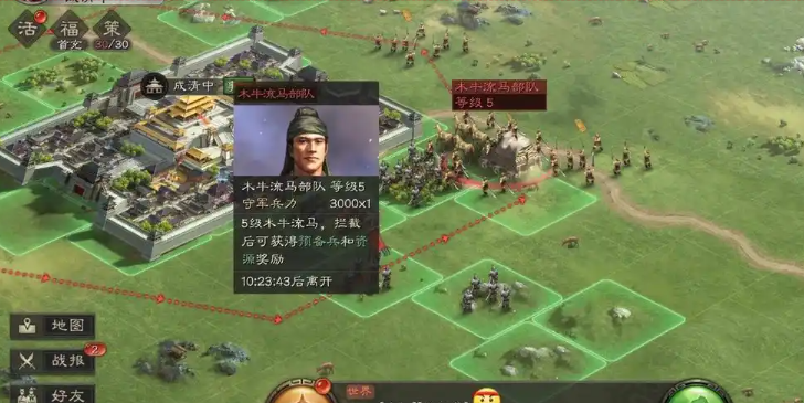 外面有很多动态机会可以捞一笔。地图上会随机刷新木牛流马和贼寇,派兵去拦截或讨伐他们,胜利后能拿到可观的资源奖励,这属于外快,看到了尽量别错过。积极参与游戏里各种限时活动,也是获取额外粮食和资源包的好途径。在游戏刚开始的新手期内,你占领土地和屯田都有额外的资源加成,这段宝贵时间一定要充分利用起来,尽可能多地打下地盘,为后续发展攒够老本。