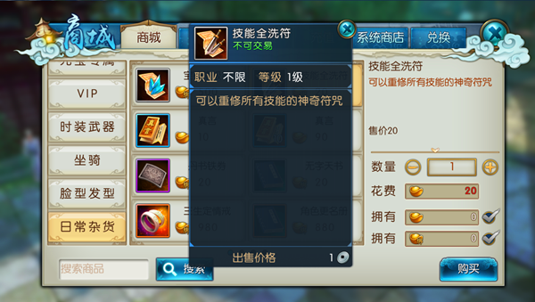 等到你的人物等级突破100级大关,事情就有点不一样了。这时候,每天的免费重修次数就用完了,如果你想再调整技能,就需要消耗一个叫技能全洗符的道具。这个道具不像免费次数那样每天刷新,你需要通过参与游戏里的一些活动,或者直接在商城里购买才能获得。所以对于100级以上的玩家来说,洗点就变成了一件需要稍微计划一下的事情,不能像以前那样随心所欲地反复调整了,得珍惜每一次洗点的机会。