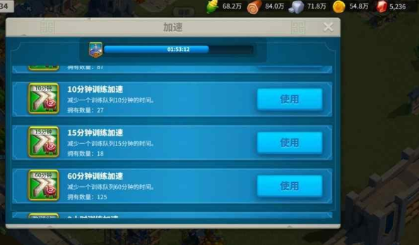 利用加速道具和宝石可以显著缩短训练时间,训练加速道具和通用加速道具能够直接减少兵种生产所需的时间,这些道具可以通过驿站或VIP商店获取,在没有加速道具的情况下,使用宝石进行加速也是一种可行的选择,但需要权衡资源消耗,不同等级的兵种训练时间差异较大,例如低阶兵种训练速度快但积分较低,而高阶兵种虽然训练时间较长但能提供更多战力优势,合理分配加速资源可以帮助在短时间内积累大量部队。