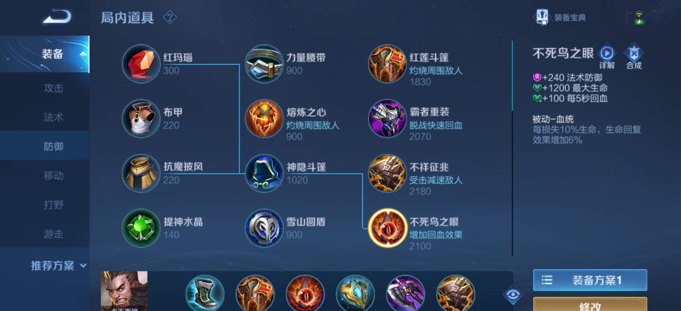 传统出装注重提升程咬金的坦度和生存能力,通过装备加成最大化其生命回复和防御属性。核心装备通常包括不死鸟之眼,它能增强治疗效果并提供法术防御,与程咬金的大招完美契合。红莲斗篷也是常见选择,提供物理防御和生命值,被动献祭效果还能每秒对附近敌人造成法术伤害,加快清线速度并帮助团战输出。其他重要装备如反伤刺甲和极寒风暴,能进一步增加冷却缩减和抗性,让程咬金在低血量时更频繁地使用技能进行反打。