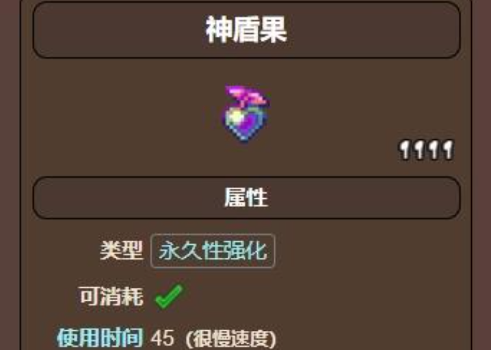 神盾果是一种消耗品,玩家只能使用一次,使用后可以永久提升4点防御。这个道具通常被戏称为给操作的角色强化为护佑的,但它是一次性的,无法叠加效果,所以在整个游戏流程中显得尤为珍贵。神盾果的内部物品ID为5338,但玩家更关注的是它的实用价值,毕竟永久防御提升在后期战斗中能带来显著的生存优势。