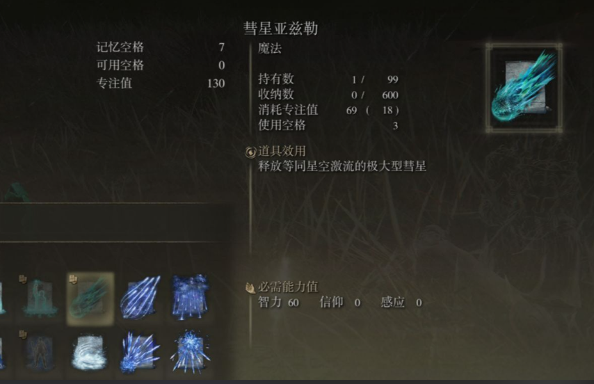 后期挑战高难度BOSS时,装备追求极致输出。法术的核心是前往火山区域获取的彗星亚兹勒,其伤害极高但耗蓝巨大。法杖可以坚持使用强化后的观星杖,或更换为对魔法加成更高的卢瑟特辉石杖来配合彗星亚兹勒。防具可以更换为蓝银套装来增加容错率,因为后期战斗风险极高。此时也可以接受NPC赠送的+7刺剑,尝试右手持剑、左手持杖的双持玩法来应对不同情况。