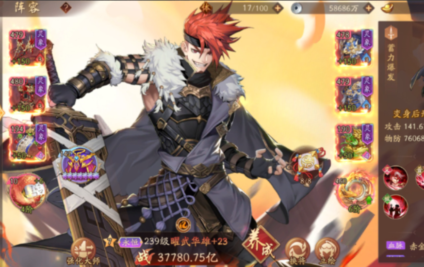 夏侯惇扮演着关键的防御角色,能够通过其高额护盾和反击机制有效吸收伤害。夏侯惇的被动技能在生命值低于一定比例时触发,提供持续恢复和群体反击效果,这使他成为前排核心,能承受大量攻击并转化为输出。培养时应优先提升防御属性,如统率和生命值,以增强其生存能力,从而稳定整个队伍的战术体系。