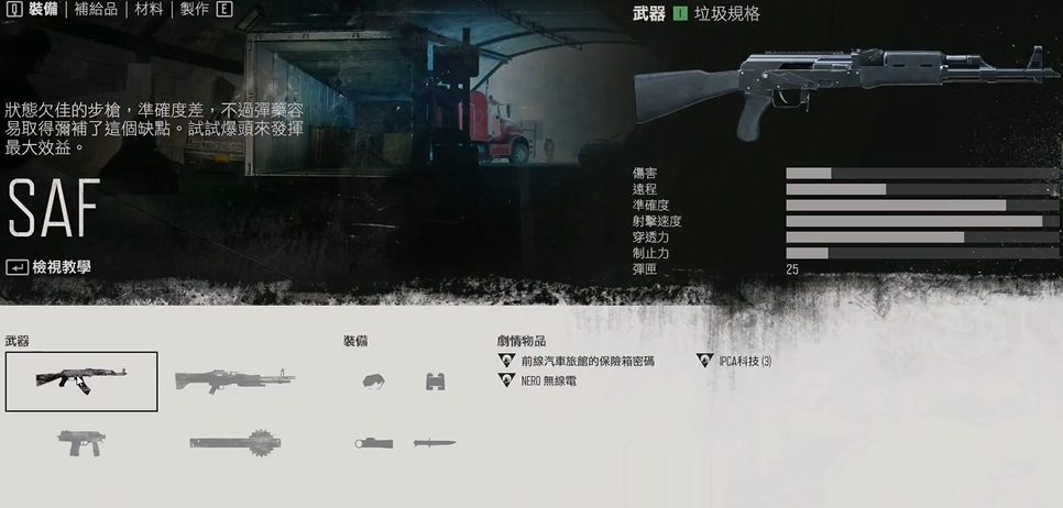 近战武器在前期性价比极高,修理成本低,能有效节省弹药资源。近战武器如带钉球棒或锯片长斧,修理仅需废铁,配合生存技能中的近战维修技能可大幅延长使用寿命。探索时优先收集废铁、酒精等基础材料,用于制作燃烧瓶和维修武器。安息者之刃等特殊近战武器攻击力高且修理成本较低,但需要通过清理埋伏营地获得。合理使用近战武器可以减少弹药消耗,应对小型遭遇战。