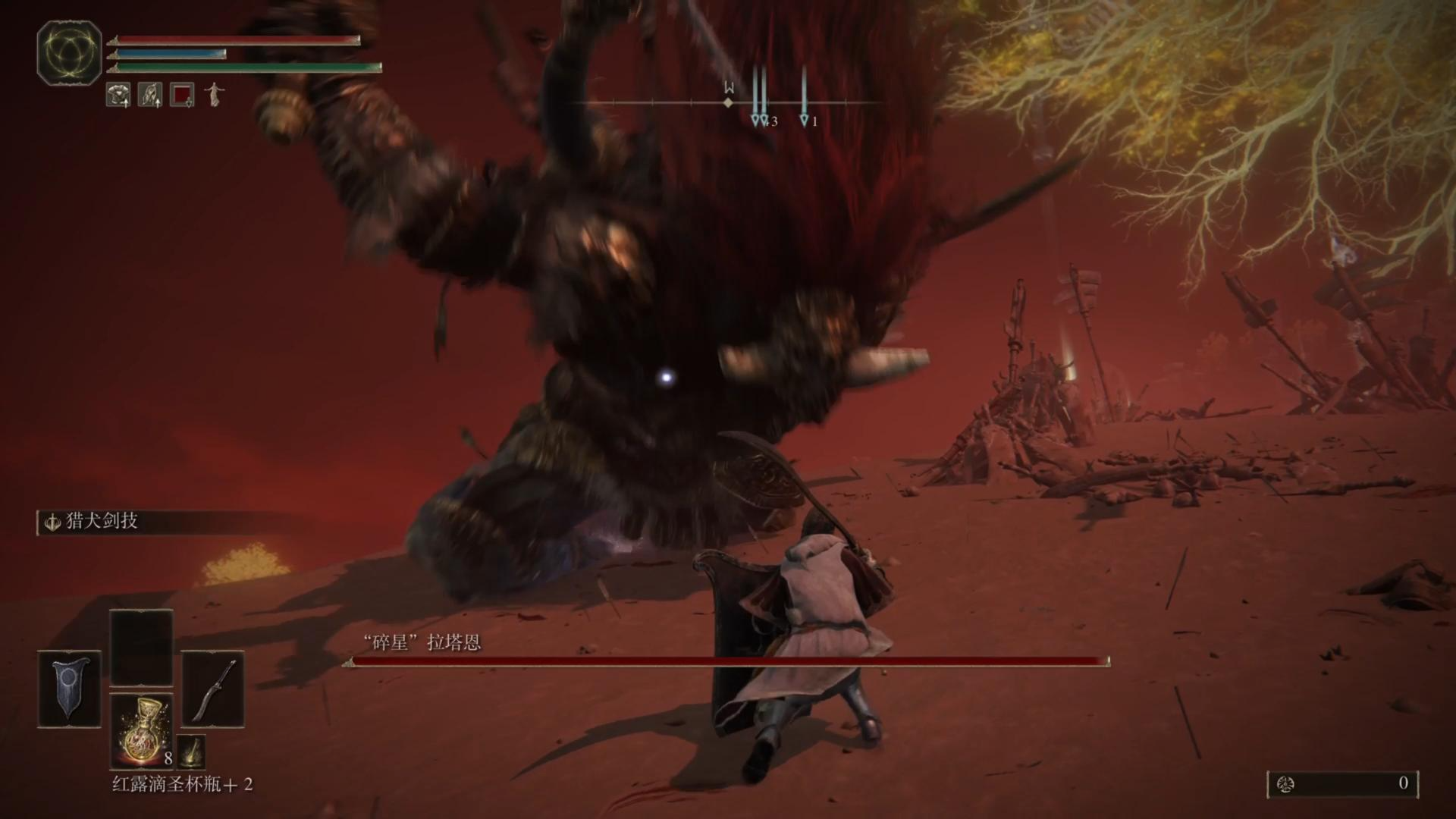 红狮子城的战斗庆典分为多个阶段,玩家需要按照管家的指示逐步推进。击败熔炉骑士和混种战士后,前往城楼与NPC对话,选择准备好了即可乘坐电梯前往海滩区域。海滩上有一个显眼的传送门,互动后会直接将玩家传送到恸哭沙丘,碎星拉塔恩的战场就在此处。碎星拉塔恩是游戏中最具挑战性的BOSS之一,战斗规模宏大,建议提前准备好远程武器或魔法以应对其高机动性。