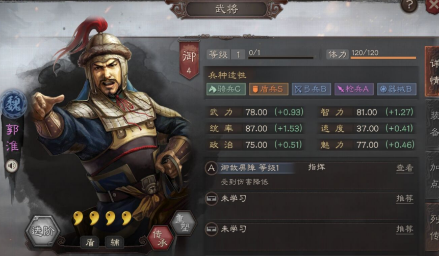 郭淮作为四星武将中的核心防御型角色,其兵书搭配需围绕其自带战法御敌屏障展开。核心思路是根据阵容定位选择九变系列强化团队保护,或虚实系列补足输出短板。若主打辅助,九变兵书的诱敌之策、励军、救主能有效分担伤害并提升队伍整体攻防;若需兼顾输出,虚实兵书的后发先至可解决速度劣势,配合攻其不备与将威增强爆发力。军形兵书的守势+防备组合则专克菜刀队,尤其适合携带藤甲兵时使用。