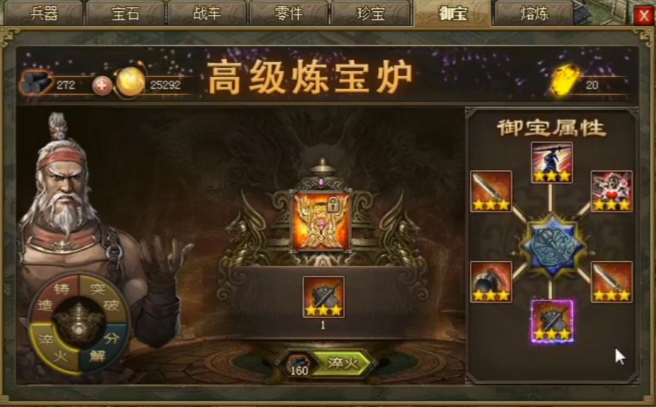 锻造御宝是攻城掠地中提升武将战力的核心玩法之一。御宝分为红、黄、绿、蓝、灰五种品质,其中红色御宝属性最优,包含火龙枪、红镜、红甲三种,均提供1200攻击力和10000血量加成。黄色御宝中流光玉符性价比最高,提供1000攻击力和9000血量,而黄鞋则侧重提升世界移动速度。锻造御宝需通过炼宝炉系统,中级炼宝炉需5级王朝解锁,可缩短锻造时间。