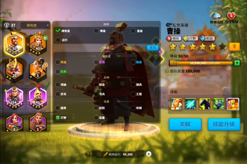 打山寨是咱们在万国觉醒中获取资源的重要方式,想要高效刷山寨,首先得准备好合适的统帅和兵种搭配。骑兵是打野的首选,因为移动速度快能节省体力药水,建议主将选择源义经或曹操这类骑兵统帅,副将搭配贝利撒留能进一步提升打野效率。兵力方面至少要准备12万以上的T2骑兵,这样打一级山寨才能保证全胜。记得提前给统帅点好打野天赋,比如增加对野蛮人伤害和减少行动力消耗的天赋都要优先点满。
