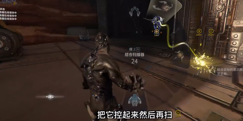 到达任务地点后,别急着乱跑,先按Q键切换到扫描器模式。精英沙漠枪兵通常藏在角落或隐蔽区域,小地图会在大黄眼提示时显示目标位置。找到目标后立刻用陷阱困住它,接着用扫描器对准胳膊和腿的四个标记点快速扫描。如果第一次没扫全,可以重复操作直到完成。目标被扫描后会消失,所以动作要快准狠。