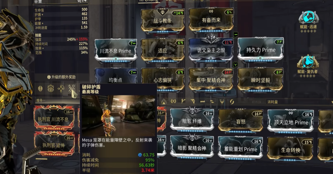 女枪P作为高爆发输出的代表战甲,核心优势在于四技能的自动瞄准与超高射速。配装思路主要围绕提升技能强度与持续时间展开,推荐携带瞬时坚毅和暗影聚精会神来强化技能伤害,搭配心智偏狭和持久Prime延长技能效果。效率方面选择弹指和简化保证能量循环,最后一个MOD槽位可根据需求选择生存向的随机应变或输出向的预言神秘。注意女枪四技能不受范围MOD影响,因此不需要堆叠范围属性。
