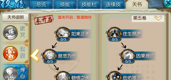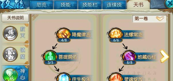 天书加点需遵循卷轴开启顺序,第一卷中降魔律言、法螺常念等地藏系天书可提升气血上限,为后续治疗量奠定基础。第二卷选择空即是色路线配合降魔之血,能有效增强生存能力。第三卷极乐颂泽提供的躲闪属性对纯奶流价值较高,而净世佛心则能转化气血为攻击力。第四卷慈悲之心是万象生佛强化的关键节点,必须点满。第五卷因点数限制通常选择顿悟之偈提升暴击,间接提高治疗波动上限。