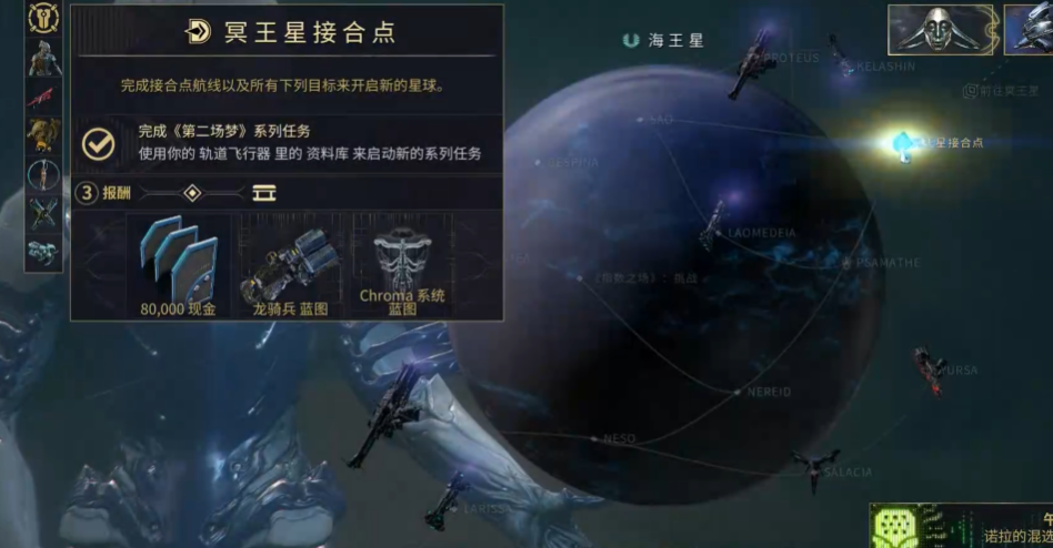 任务流程其实挺清晰的,就是满太阳系跑着捡破烂修飞船。第一站是火星的Ares节点,回收机身残骸;接着去地球的Cervantes找推进系统;月球Plato节点拿左舷吊舱;金星Tessera找右舷吊舱;塞德娜Berehynia捡机尾;最后到欧罗巴Orias搞到引擎整流罩。每回收一个部件都要带回干船坞修复,修完还得等12小时,建议提前备好材料比如碳化物、寄生脓包这些。