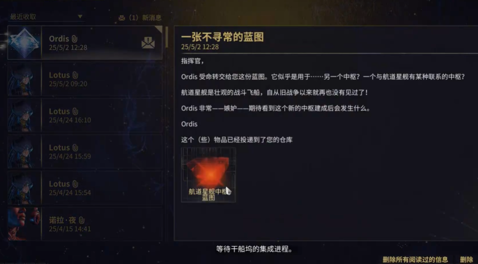 要开启澎湃狂潮任务,咱们需要先完成第二场梦系列任务,然后在商店花35000现金购买航道星舰中枢蓝图,接着去铸造厂把它造出来。这些前置条件搞定后,记得去资料库手动启动任务,这时候会收到中枢Cy的消息,它会让你带着它去氏族道场的干船坞,故事就从这里正式开始了。
