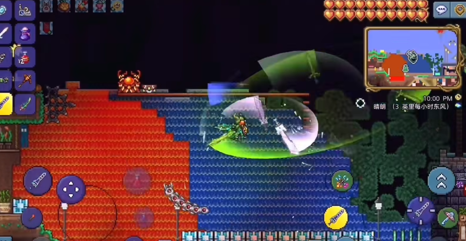 食人鱼枪在丛林宝箱里,特点是能持续咬住敌人,适合对付单体目标。彩虹枪在地牢神圣宝箱中,能发射彩虹光束对敌人造成持续伤害,清怪效果不错。冰龙杖在地牢冰霜宝箱里,召唤冰龙攻击,击退效果很强。腐化杖在地牢腐化宝箱中,发射的吞噬者碰到墙壁会分裂,伤害和攻速都很可观。吸血刀在地牢血腥宝箱里,攻击能吸血,是近战玩家的保命神器。