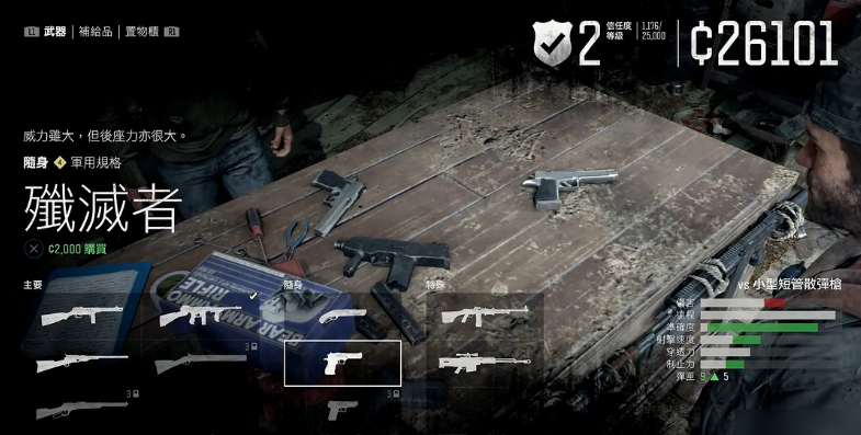 前期获取方面,小型短管霰弹在温泉营地信任度达到2级就能购买,算是比较容易入手的实用武器。而市长需要通关后才能解锁,属于后期奖励。如果咱们还在游戏前半段,可以先专注培养霰弹枪,它的高爆发伤害对付初期的小型尸潮完全够用。别太纠结弹药消耗,这游戏里霰弹子弹其实挺容易补充的,各个营地商店基本都有存货。