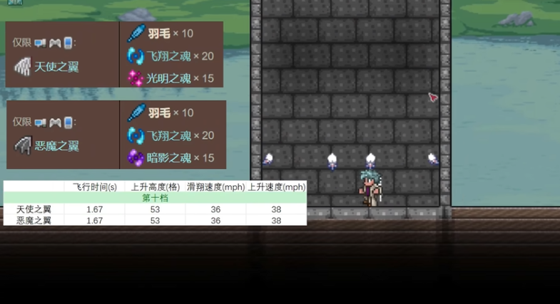 翅膀的合成需要特定的工作台和材料。翅膀的合成地点主要在秘银砧或山铜砧旁进行,而不是普通的工作台。这类高级砧台需要通过击败肉山后获取的秘银矿石或山铜矿石制作而成,是后期装备合成的关键设施。合成翅膀的基础材料包括飞翔之魂、羽毛以及各类翅膀特有的辅助材料,这些都需要在困难模式中通过特定方式获取。